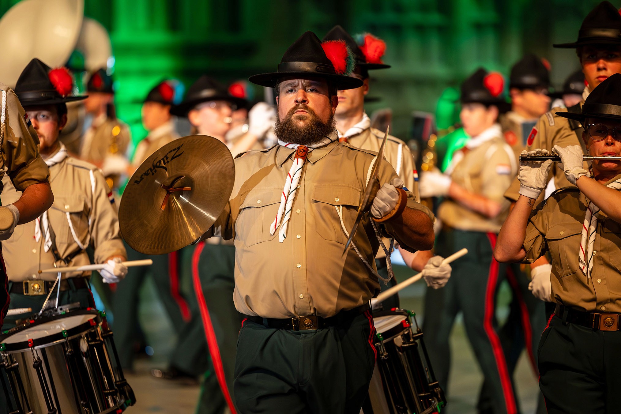 De Maastrichtse Verkenners Band is een toonaangevende show- en marchingband uit het zuiden van Nederland, waar muziek, beweging en spektakel samenkomen in één indrukwekkende totaalbeleving. Met ruim 130 leden uit Nederland, België en Duitsland vormt de band een unieke, internationale groep waarin passie, discipline en plezier centraal staan. Als vice-wereldkampioen show weet de band als geen ander hoe zij een publiek moet raken. Verwacht strakke formaties, krachtige muziek en een visueel verbluffende show die u van begin tot eind meesleept. Hun optredens zijn energiek, vernieuwend en tot in de puntjes verzorgd. Tijdens de Internationale Taptoe België brengen zij een dynamisch optreden dat u niet wilt missen. Laat u verrassen door hun enthousiasme en vakmanschap en beleef een show die nog lang zal nazinderen!